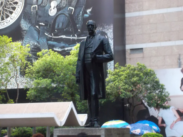 Behind the LegCo is Chater Garden, named after the Armenian businessman Sir Paul Chater (1846-1926), who came to Hong Kong in 1864. He made a fortune as a banker and real estate investor. On reclaimed land he built Royal Square, which was later renamed Statue Square (Wordie, p. 28). Sir Chater was an Anglophile, and he expressed his pro-British feelings by commissioning the statues I mentioned before.