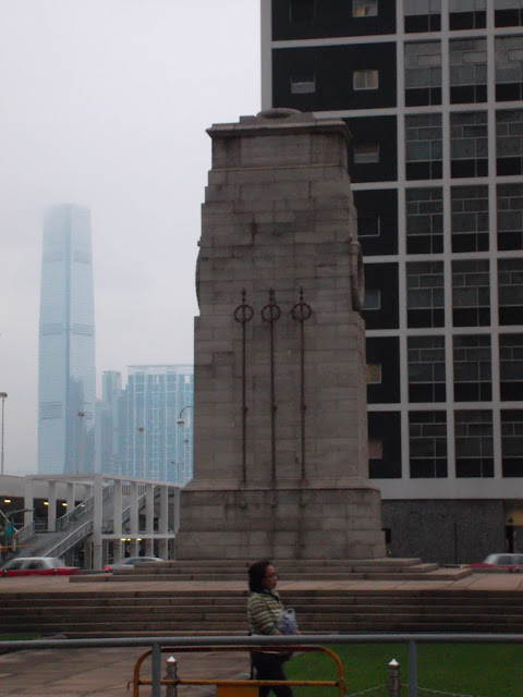 On the left of the cenotaph is the Mandarin Oriental, one of the most prestigious hotels in Hong Kong. The Mandarin Oriental is also remembered for a tragedy that took place on 1 April 2003: Leslie Cheung, the iconic singer and actor who starred in films such as Wong Kar-wai's Days of Being Wild and Chen Kaige's Farewell My Concubine, jumped off the 24th floor of the building. As the Time reported, on that Tuesday