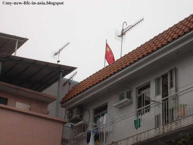 | Some of the residents must be People's Republic of China patriots. This is - so far - the only PRC flag I have seen fluttering above a private house in Hong Kong |