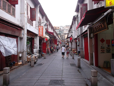 Located in the historic centre of Macau, only a few minutes’ walk from , there is a street whose traditional Chinese-style buildings and romantic name seem to take one back to a long-gone colonial era, in which the society of old China mingled with the cosmopolitan, busy lifestyle of the former European enclaves in the Far East. Lined with two-storey, grey brick Chinese houses with conspicuous red windows and doors, decorations and inscriptions that recount old legends, the street is a remarkable example of the mix of traditional Chinese architecture and Western patterns. Here the visitor feels as if time had stood still, and is finally able to imagine, far away from the modern casinos and shopping malls, how life might have looked like for ordinary people in old Macau.